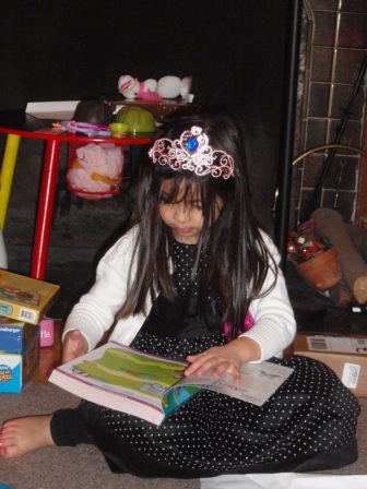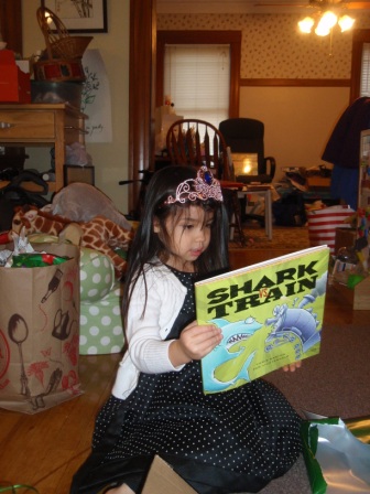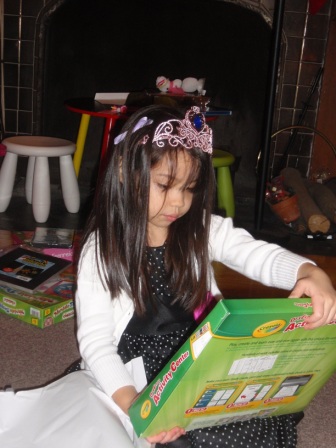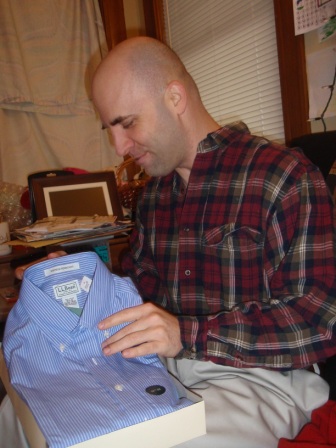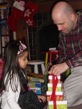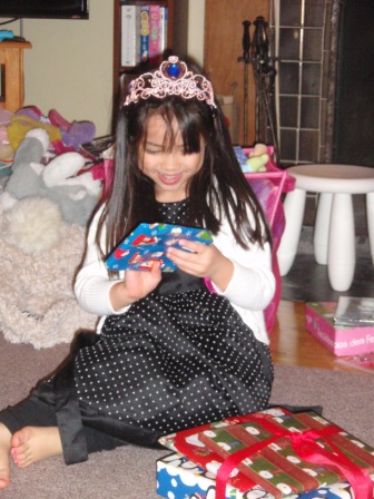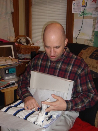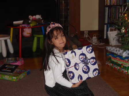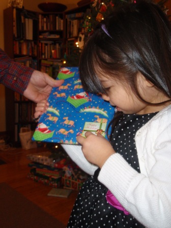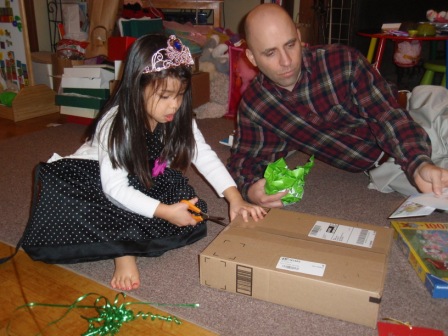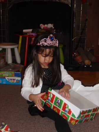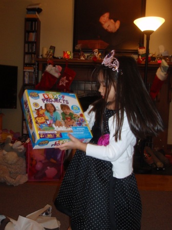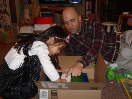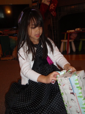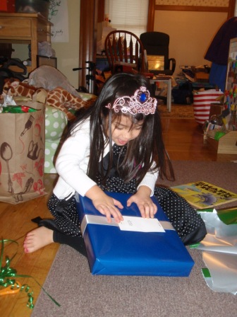 Back to opening presents. Jon finally got to open a few of his gifts. Aurora carefully examined each