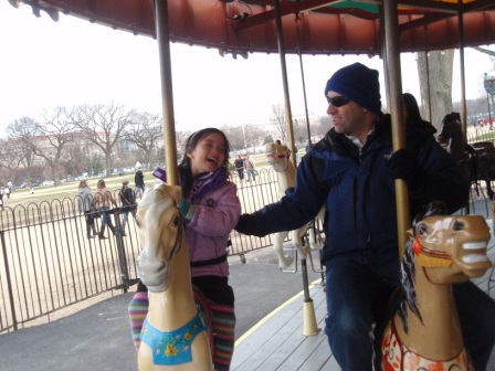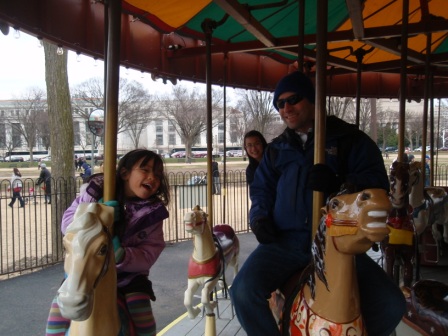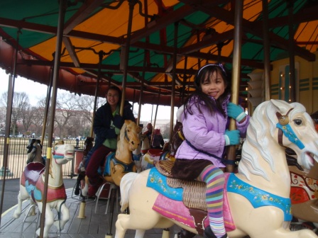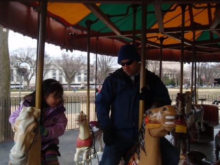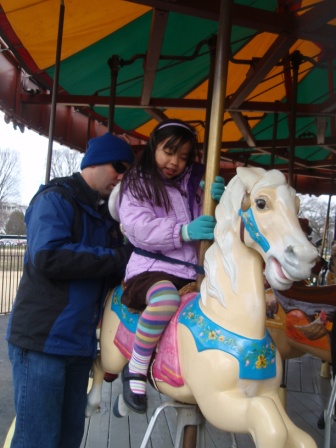 Outside, we saw the Washington Monument. Aurora was more excited to see a carousel.