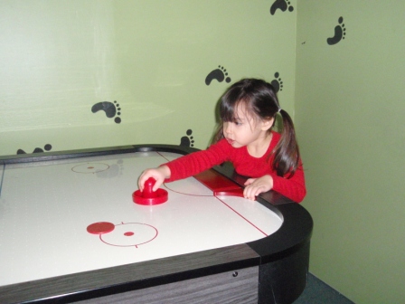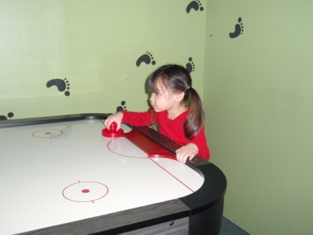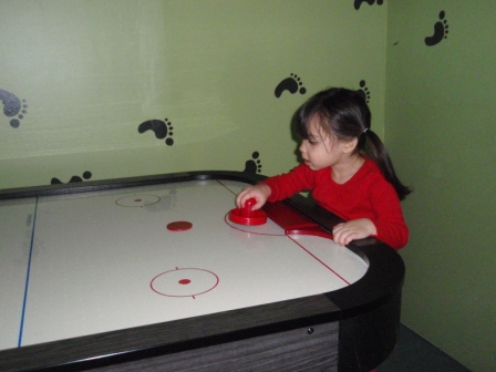 Apparently, Aurora is a natural at air hockey. I love how
