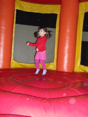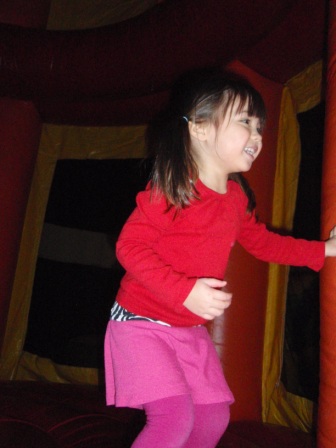 After a bit, she decided to try out the inflatables. Here she is on an obstacle course.