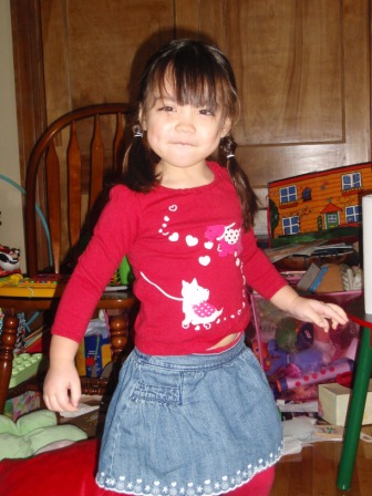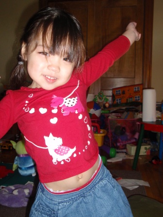 February 19, 2011: Aurora and her friends are all ready to watch Baba work out in the living room.
