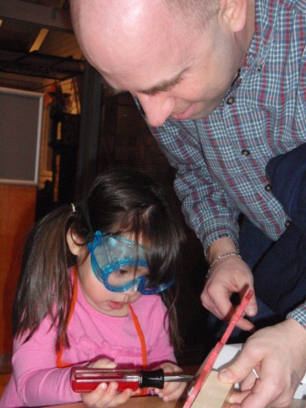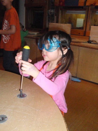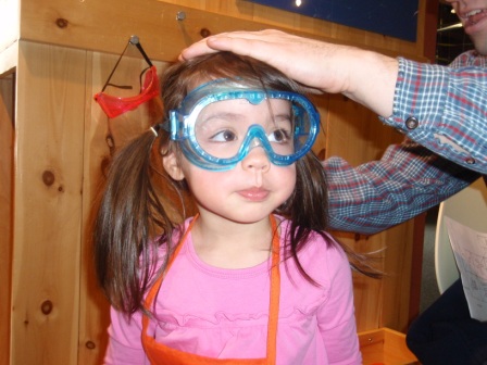 is excited to have an eager apprentice! Kathy just loves how cute Aurora is in her goggles and apron.