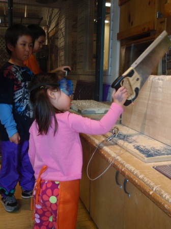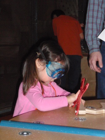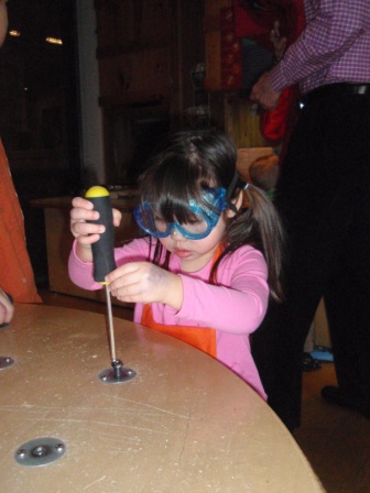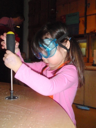 The workshop is a new favortie. Aurora was working very hard to learn how to use a screw driver. She