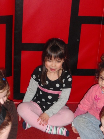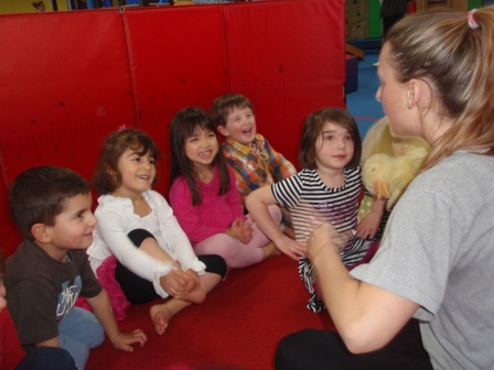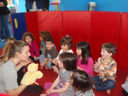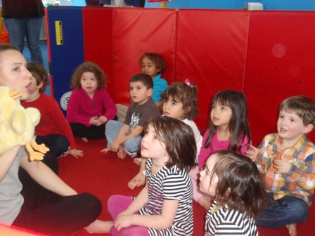 Listening to a story about the 3 little ducks.
