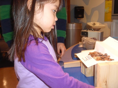 paper bridge. She did pretty well - her bridge held far more pennies than expected!