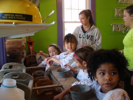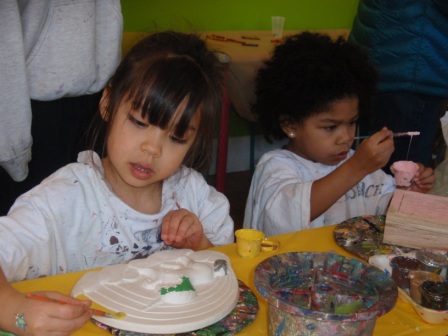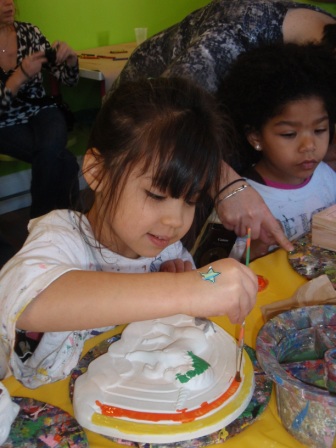 Greer's 4th birthday party at The Kids Place. Aurora decorated a plaster plaque and got to mine for gems. She