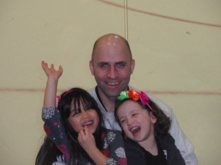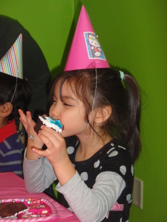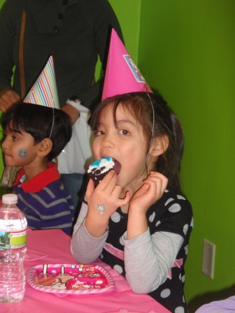 Then it was downstairs for pizza and cupcakes. (Aurora avoided the veggies)