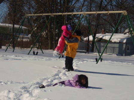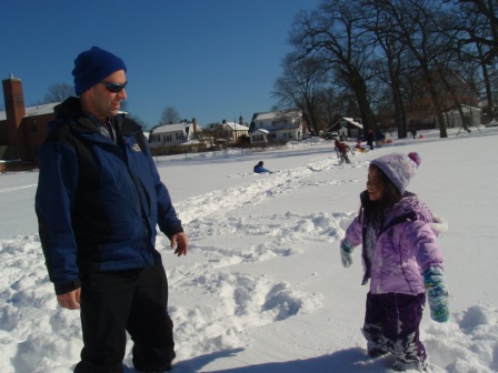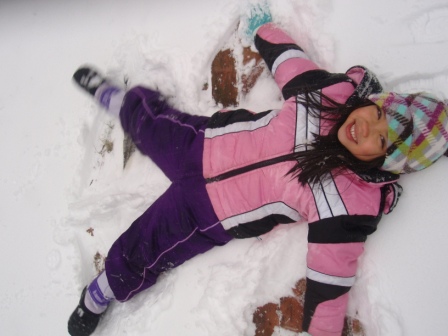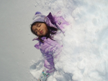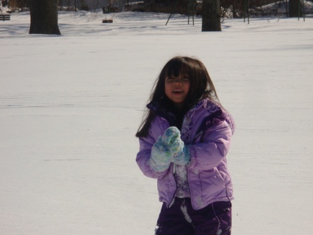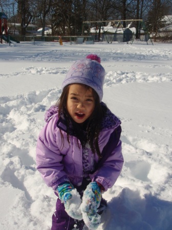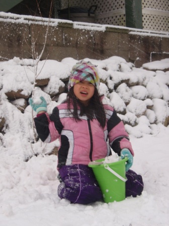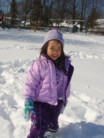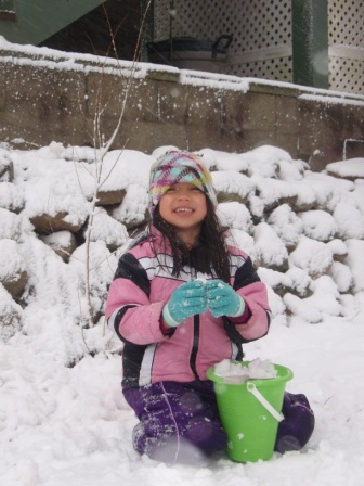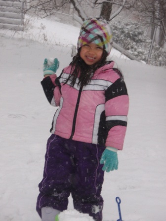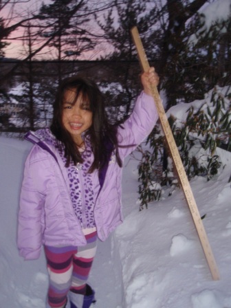 February 10, 2013: Everything is still quite snowy, but Aurora is ready to go sledding! We are invited to