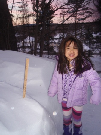 Aurora measures the snow for herself.