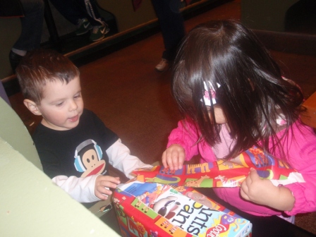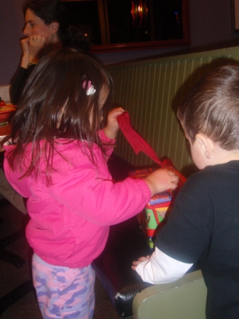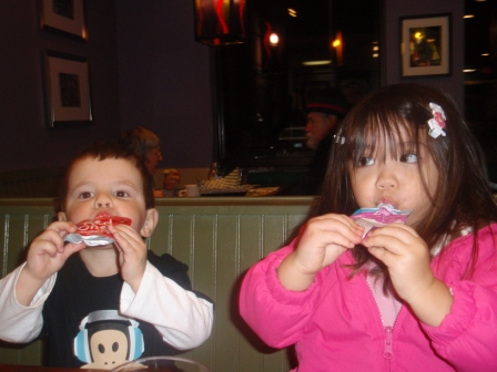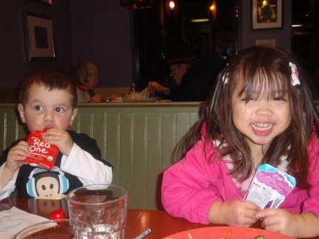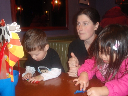 January 11, 2011: Dinner with Corin, Oliver, and Lindsey! The kids start off with MishMashes and move