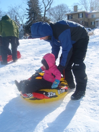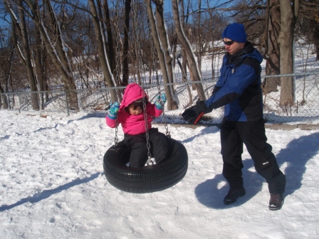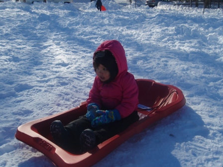 January 17, 2011: Jon and Kathy have the day off, so we took Aurora sledding at the playground. She was so excited