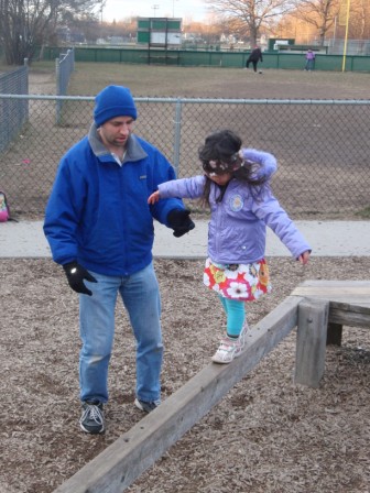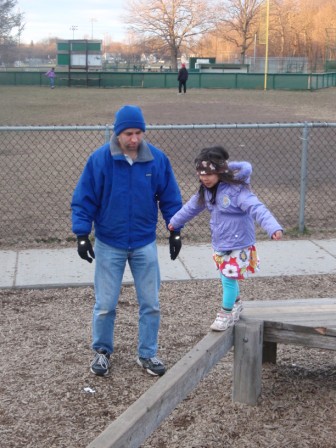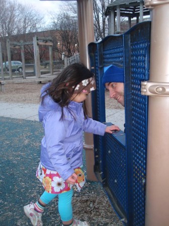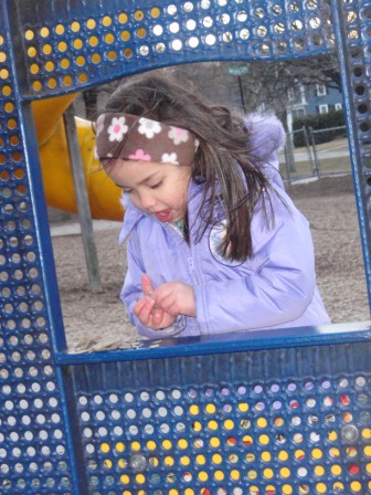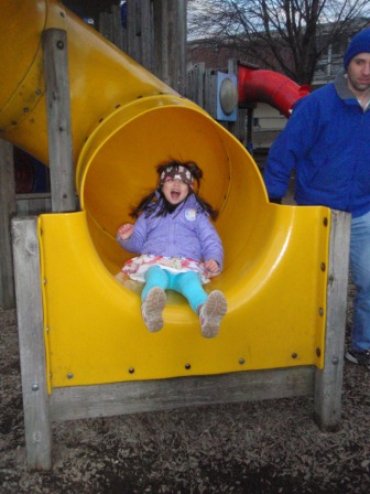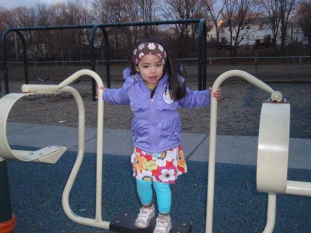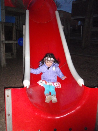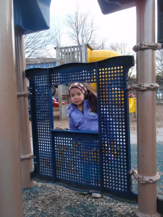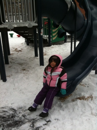 January 8, 2012: Aurora spends quality time at the playground. We are very fortunate to have several