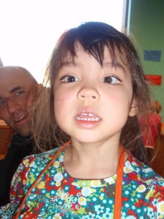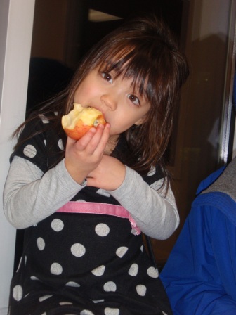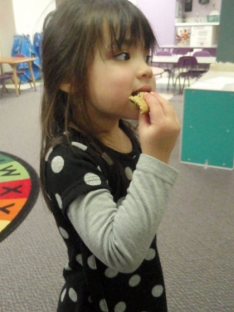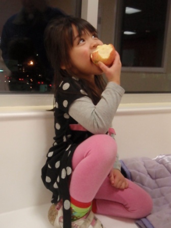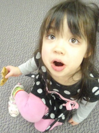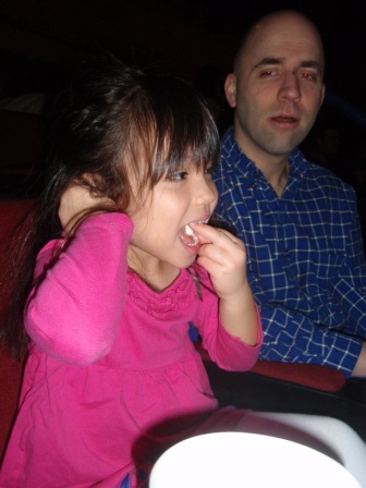 January 29, 2012: After seeing "Flat Stanley" (and having a cookie in the lobby), Aurora is hungry for