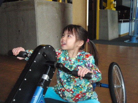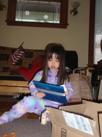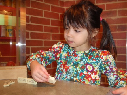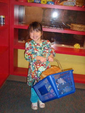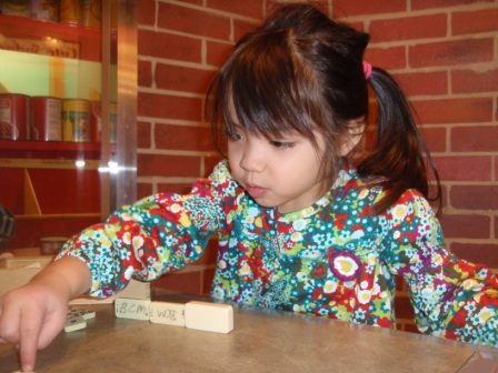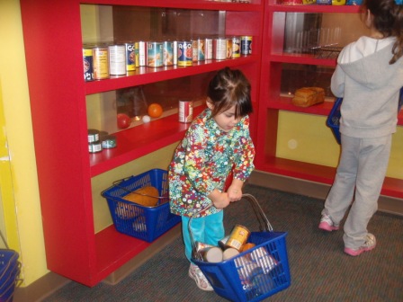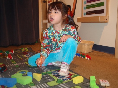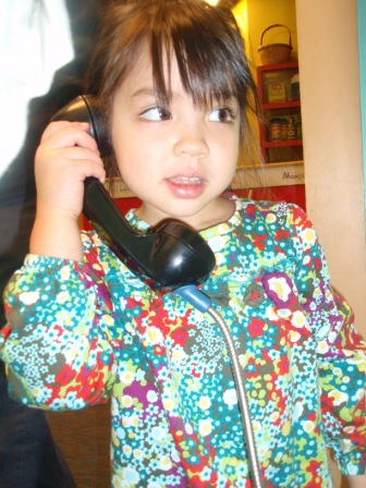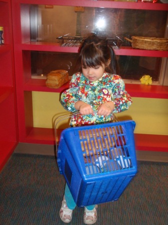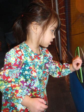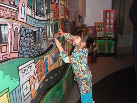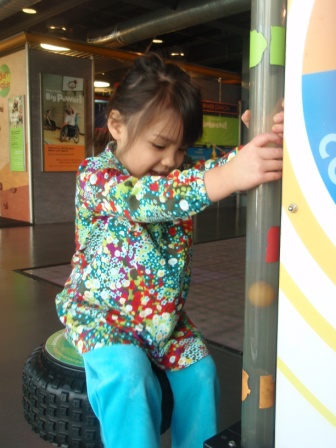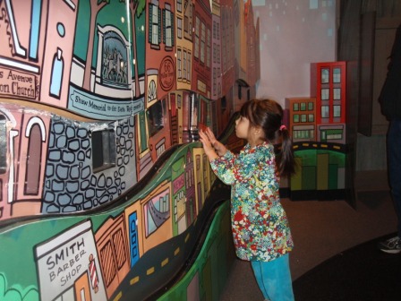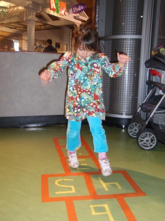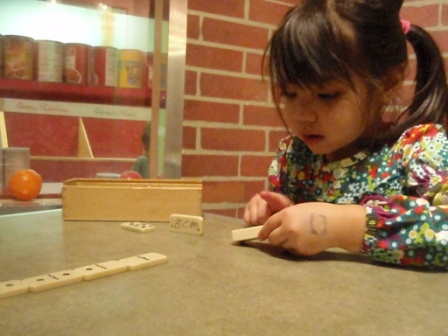Back at the Children's Museum. Here she is in the "kindergarten classroom."
