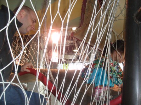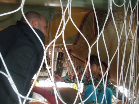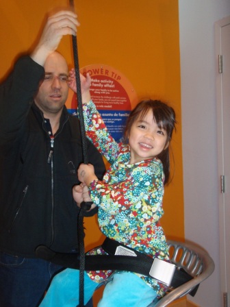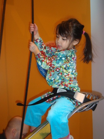 She still asks Baba to go with her into the climbing tower. He will be sad when she is confident enough