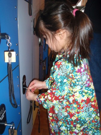 Aurora is still working on her fine motor skills. She's almost mastered buttons and keys/locks.