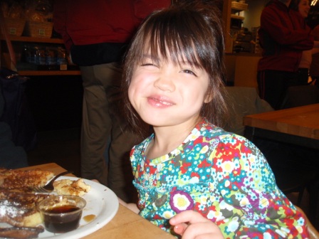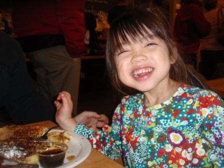 Brunch at Flour around the corner from the Children's Museum. Here she is enjoying her french toast and