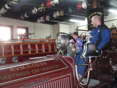 Special treat! The Boston Fire Museum is open today! Aurora gets a brief lesson on firefighting