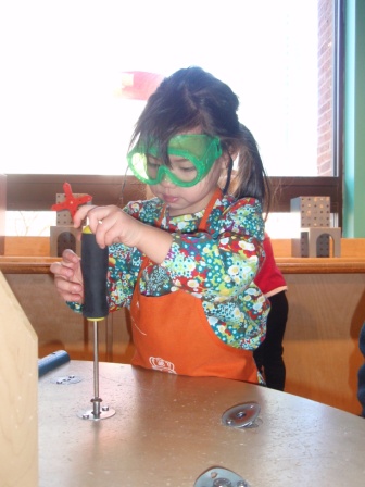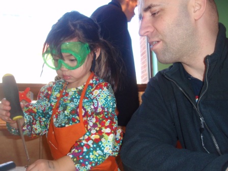 Jon's favorite room - the workshop! He is training Aurora to be his handyman helper. Kathy