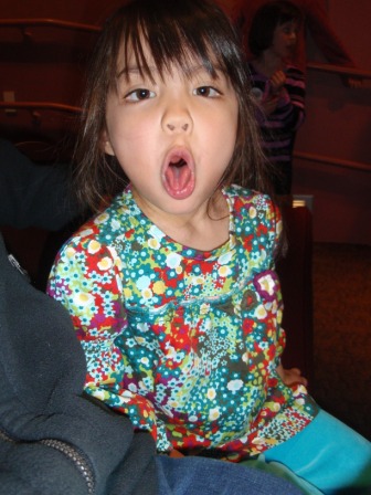 January 28, 2012: We attend a kid's concert at the Coolidge Theater. Aurora is worried that the