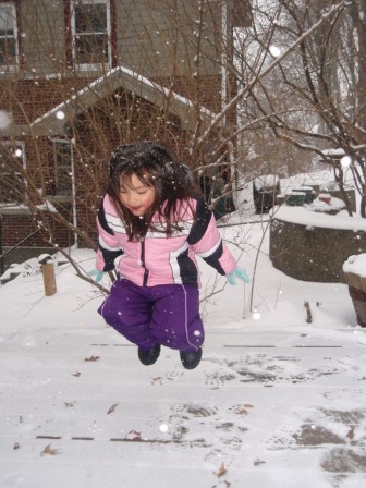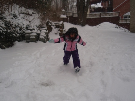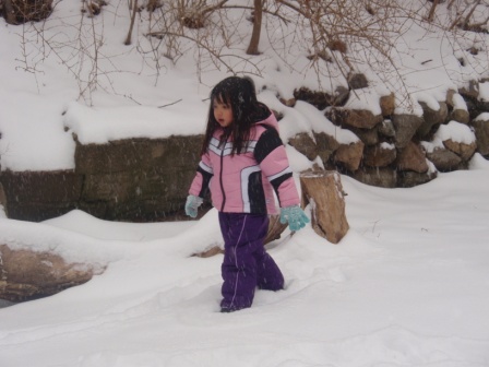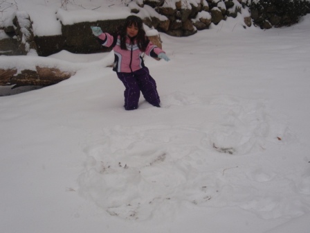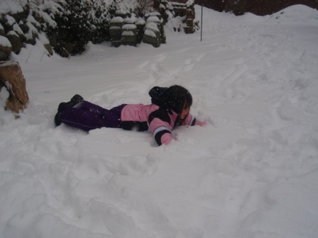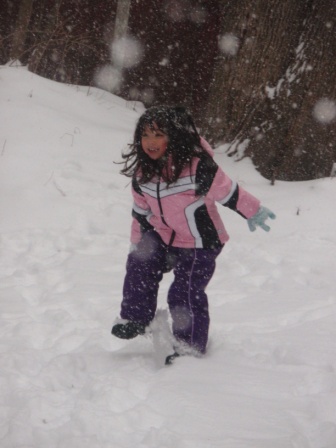 January 17, 2012: A little bit of snow finally fell! Aurora cannot wait to make a