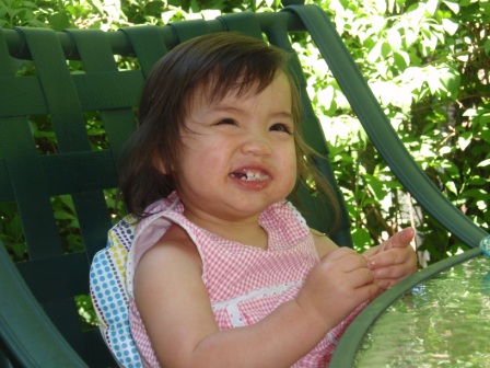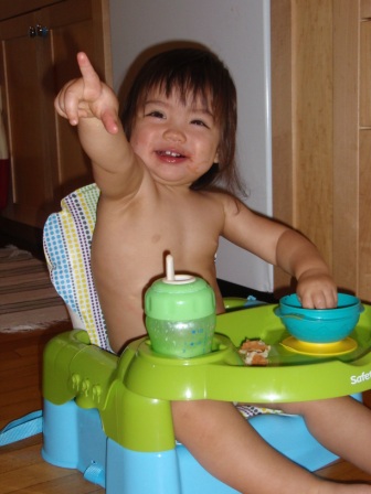 Aurora is excited to be eating cherries for her morning snack. (that's why she's topless) She loves her