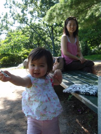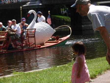 July 5, 2009: We took advantage of a sunny morning to make a quick trip to the Public Garden and take Aurora on