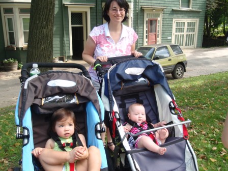 July 17, 2009: We went on a short walk in Brookline with Sharon, Amy, and Greer. This is the first time Kathy