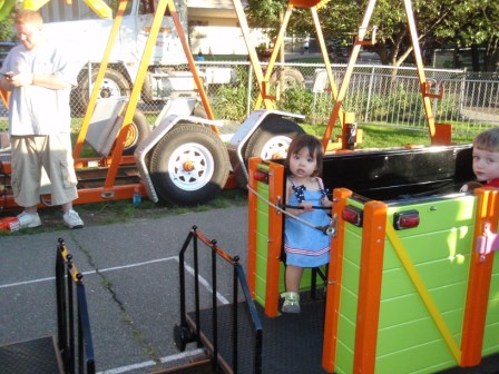 Then it's off to the carnival! Aurora rode the Candy Express train by herself, then went on a ride with Grandma,