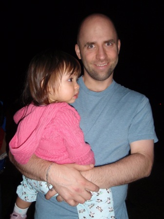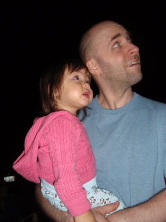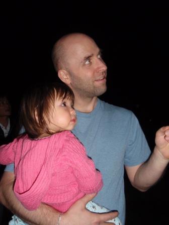 July 8, 2009: Aurora enjoys evening time with Baba.