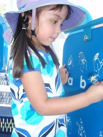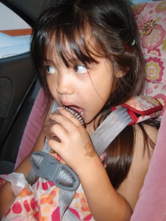 her trusty (and tasty) right thumb, and she is very good at compensating to make the correct sounds.