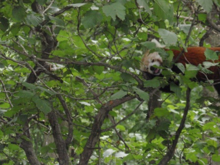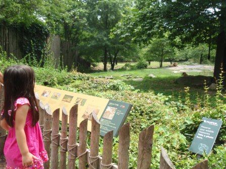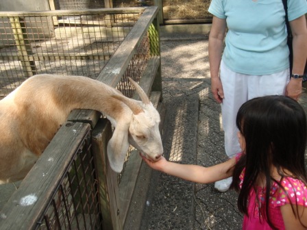 Wai Po tries out a bird's nest in the Children's Zoo.