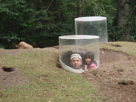 Aurora and Jon look at the prairie dogs like prairie dogs.