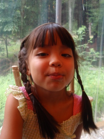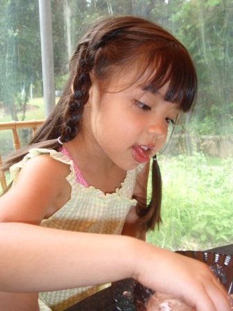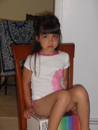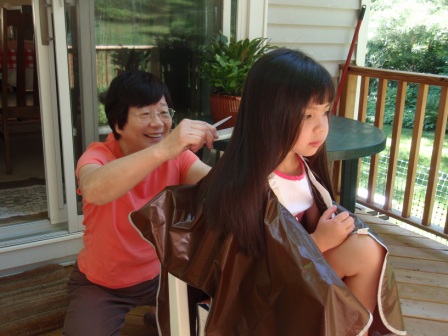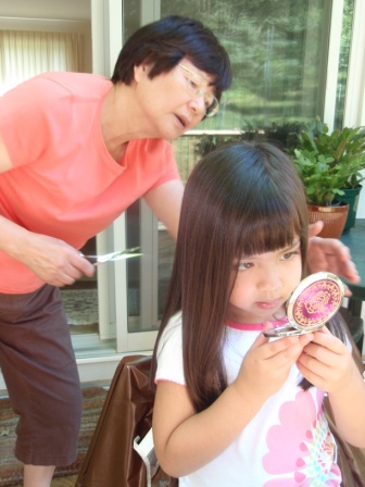 July 8, 2012: Aurora gets a haircut the way Kathy did for the first half of her life.