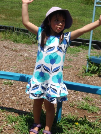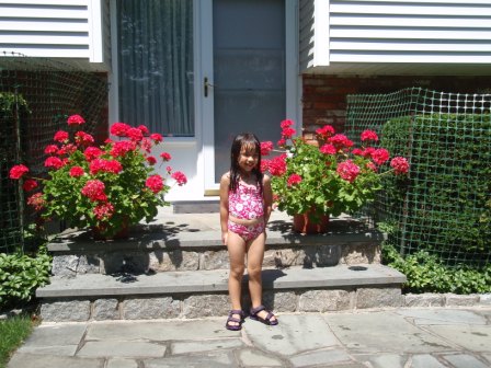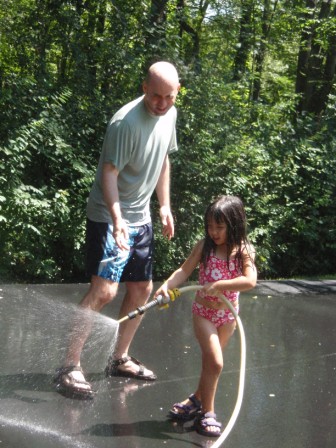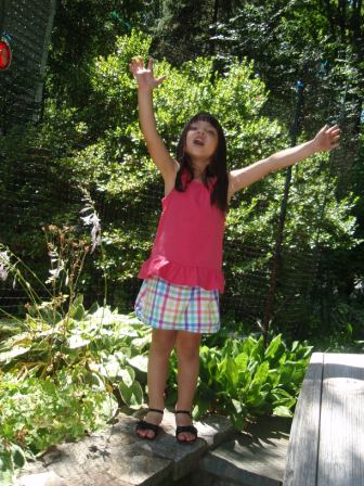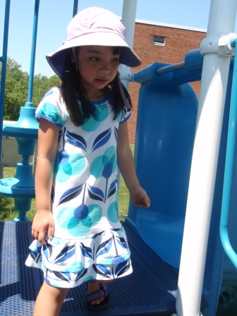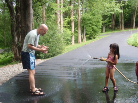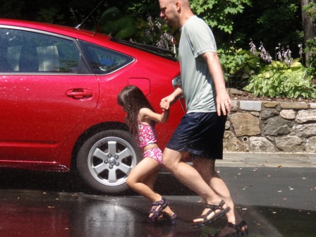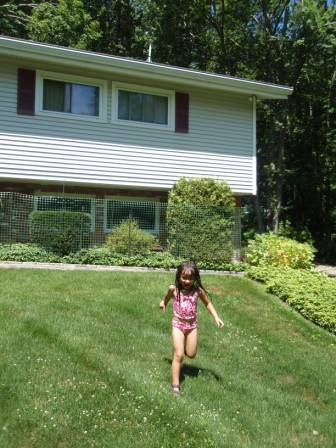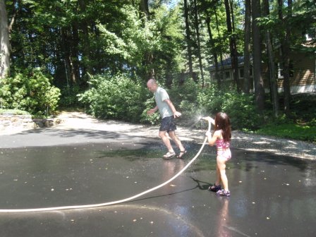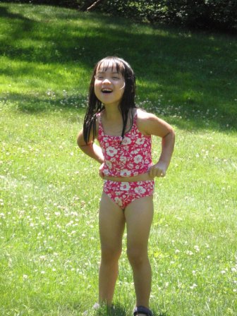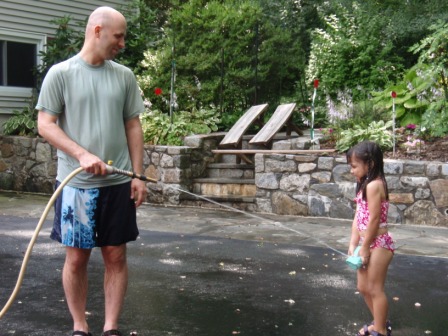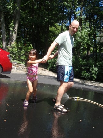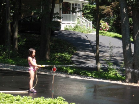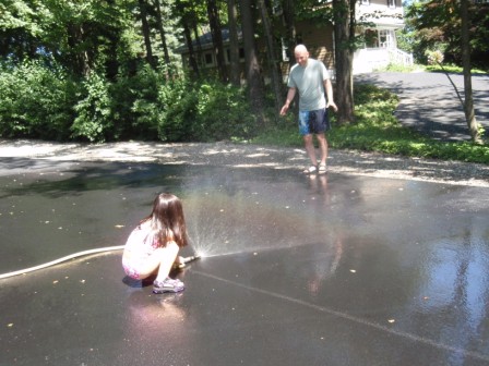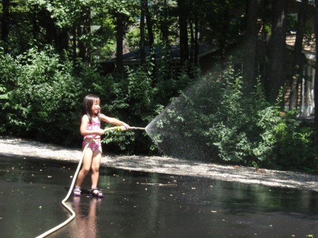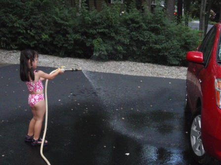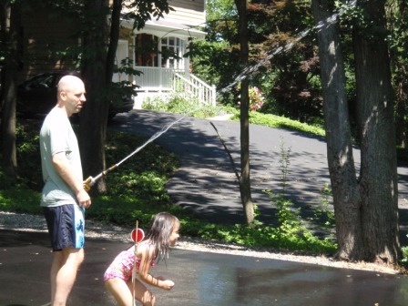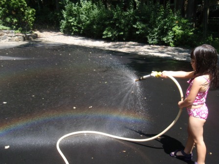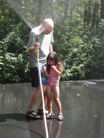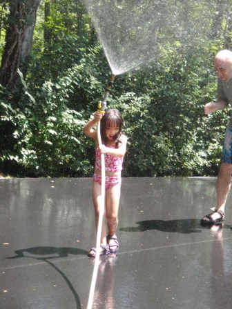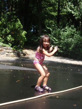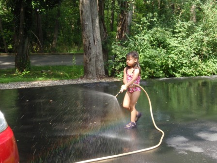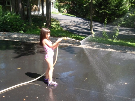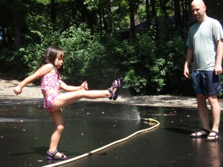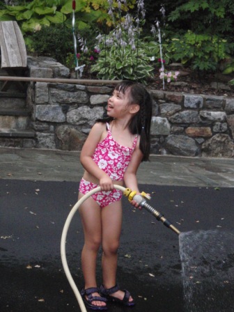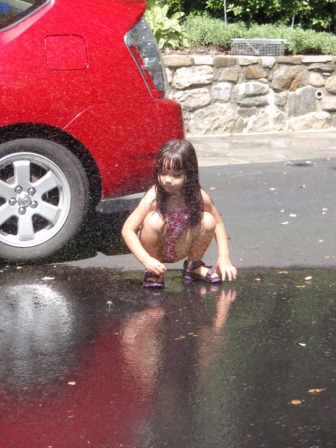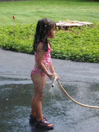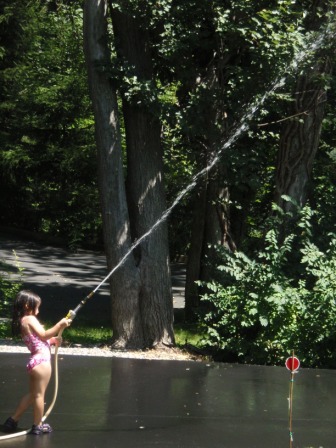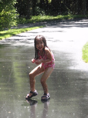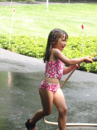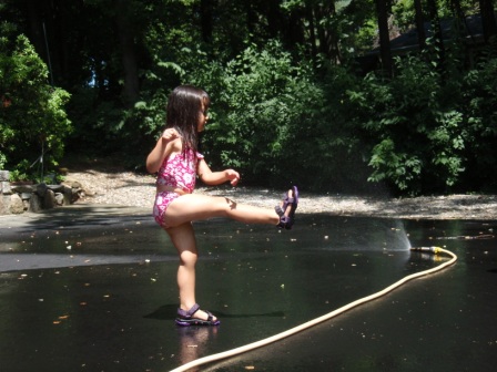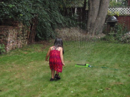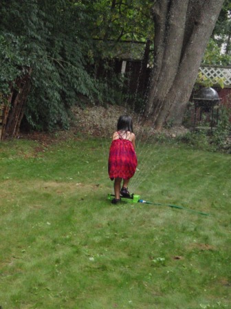 July 14, 2012: Aurora begins the day with some sprinkler time. In her dress.