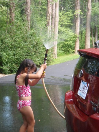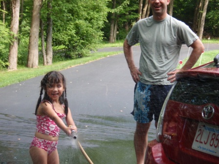 Back at Wai Po and Wai Gong's house, Aurora helps wash Baba's car. And Baba.