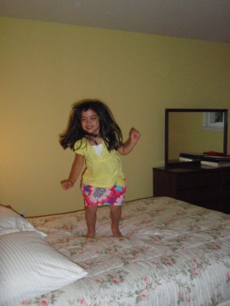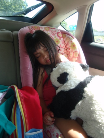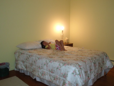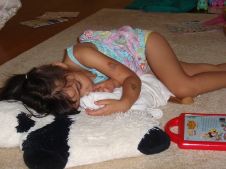 July 16, 2012: Aurora is so tired, she falls asleep on Mama and Baba's bed.