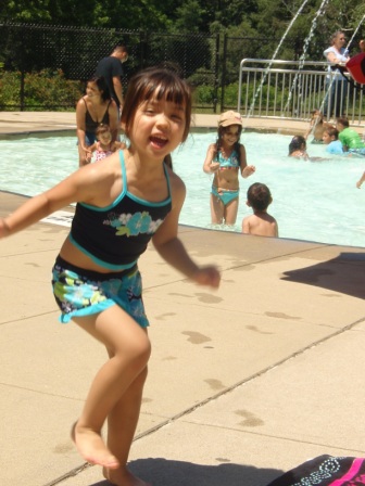 July 10, 2012: We meet Greer at the Artesani Spray Park on the Charles River.