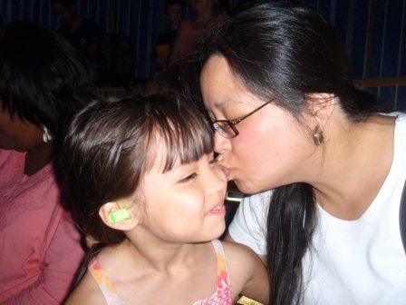 Ariana enjoy seeing the Circus Smirkus performance. This year, Aurora uses earplugs so