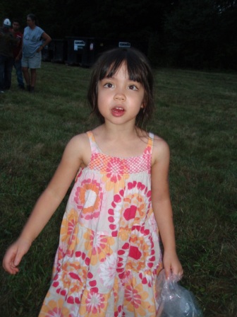 July 5, 2012: Aurora shows off the big balloon we got for her party in June.