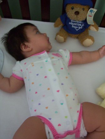 she was jealous of the other baby Mama or Daddy was holding). She's also getting better at tummy time.