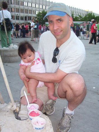 June 11: SCOOPERBOWL DAY! Here Aurora is trying to decide which frozen raspberry dessert she prefers.