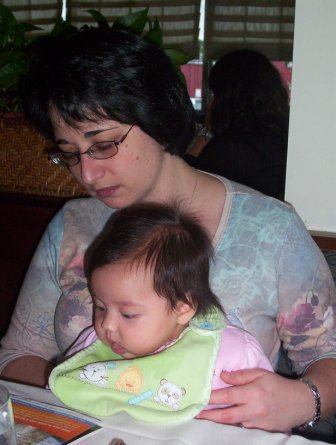 Happy to be back at home...notice how Aurora's top no longer matches her pants. Can you guess what happened after lunch?