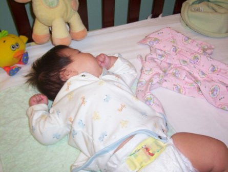 harder to get her right thumb into her mouth when she is in this position. But she finds a way to do it!