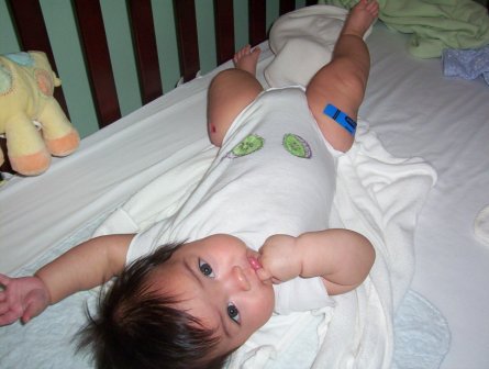 how to consistently get her right thumb into her mouth, she began to work on her left thumb. She discovered she has toes!