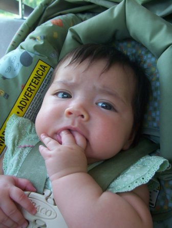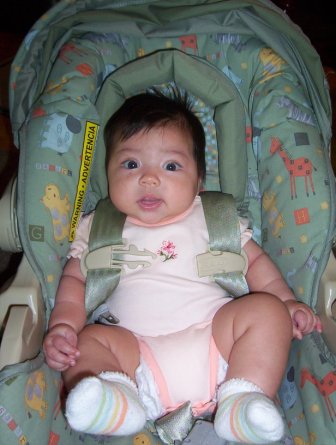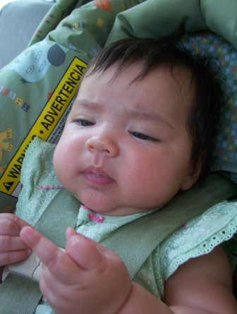 June 3: Aurora is all smiles in the morning, but then is a bit surprised to find herself in the carseat!
