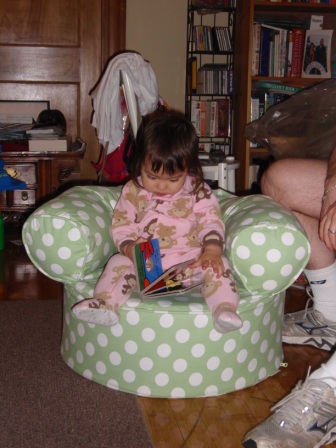 May 7, 2009: Aurora tries out her new chair. It's just perfect for reading books!
