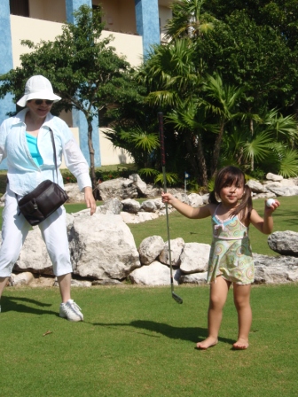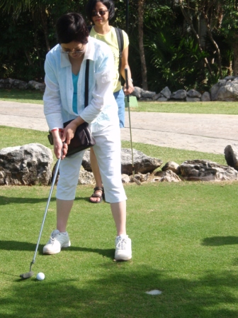 On our way back to the beach, we ran across Wai Po, Wai Gong, Amy, and Daryl on the putting green. Wai Gong