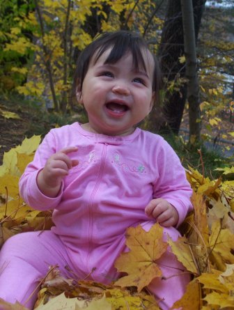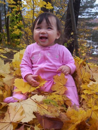 Aurora spends a little time helping Mama rake leaves.