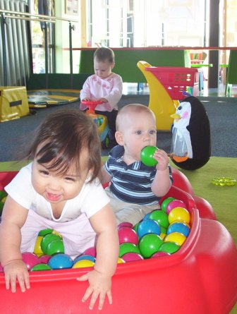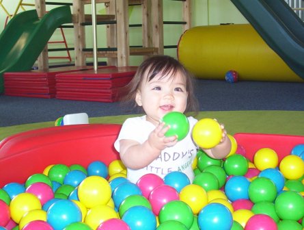 November 24: At JW Tumbles in Austin. Aurora, Sarah, and David all enjoy romping about.